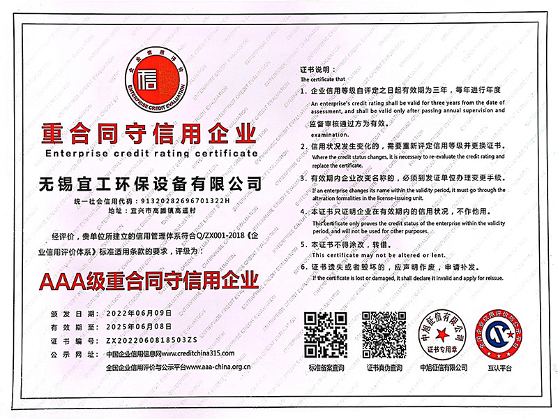 • 環保設備制造維修企業服務能力等級證書